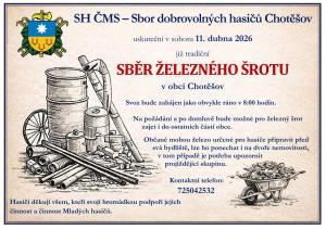 Sbor dobrovolných hasičů Chotěšov uskuteční v sobotu 11.4.2026 tradiční sběr železného šrotu. Svoz bude zahájen ráno v 8:00.