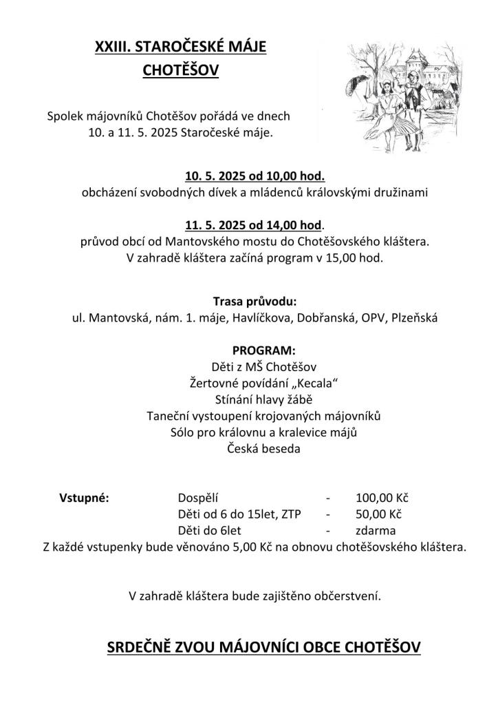 Spolek májovníků Chotěšov pořádá ve dnech 10. a 11. 5. 2025 Staročeské máje.